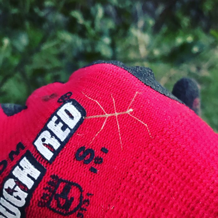 そう、去年にも畑で何度かお会いしたナナフシの産まれたばかりとみられる子供がそこにいた。