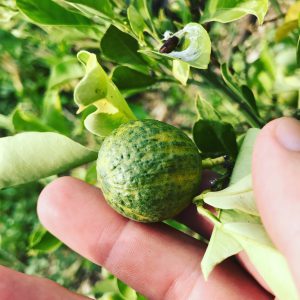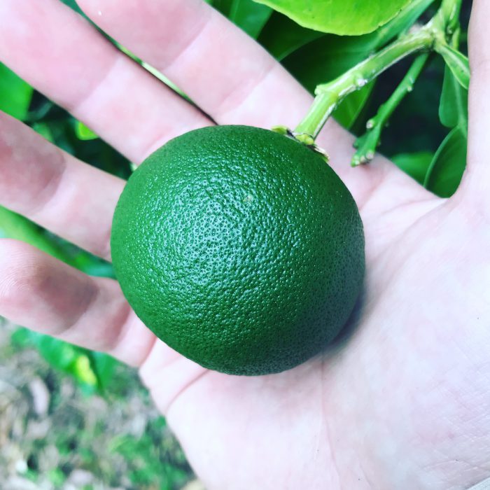 こちら、こっそりと栽培を開始した、まだ新入りにしてルーキーの地球柑(斑入りの橙)。