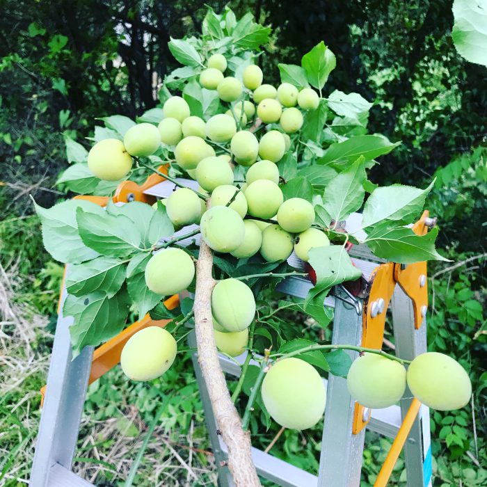 切り上げ選定 私は『切り上げ選定』を学んだが、学びから実践してみて、やはり植物学的に合っていると理解出来ている。 本来ならばまず「いい実はならない」という理由で真っ先に切除対象の力強く垂直に伸びる枝。 木自体が考えて、一番力を込めて懸命に伸ばしているんだ。 植物ホルモンがそれを裏付けている。 いい実がならない訳なかろうよ。 そんな確固たる実感をくれた梅の木に感謝。