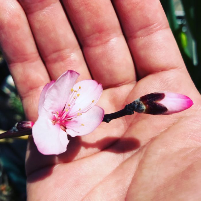 親戚としては、アンズ、桃、梅がいるけど、アーモンドの果肉はとても薄くて、食用にはならないとのこと。