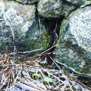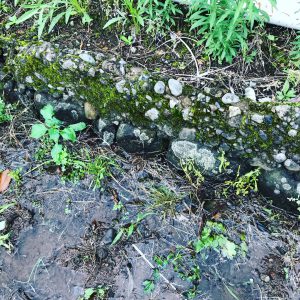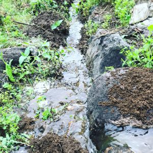 昨日までの大雨で道路側の石垣の下から水がこんこんと湧き出している。