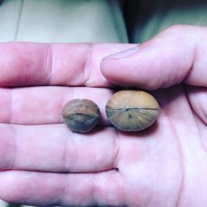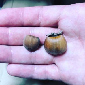 右が持ち帰った西洋ハシバミ(ヘーゼルナッツ)