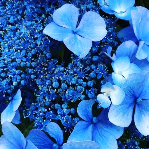 この薄い鮮やかなスカイブルーのあじさいを見ると、