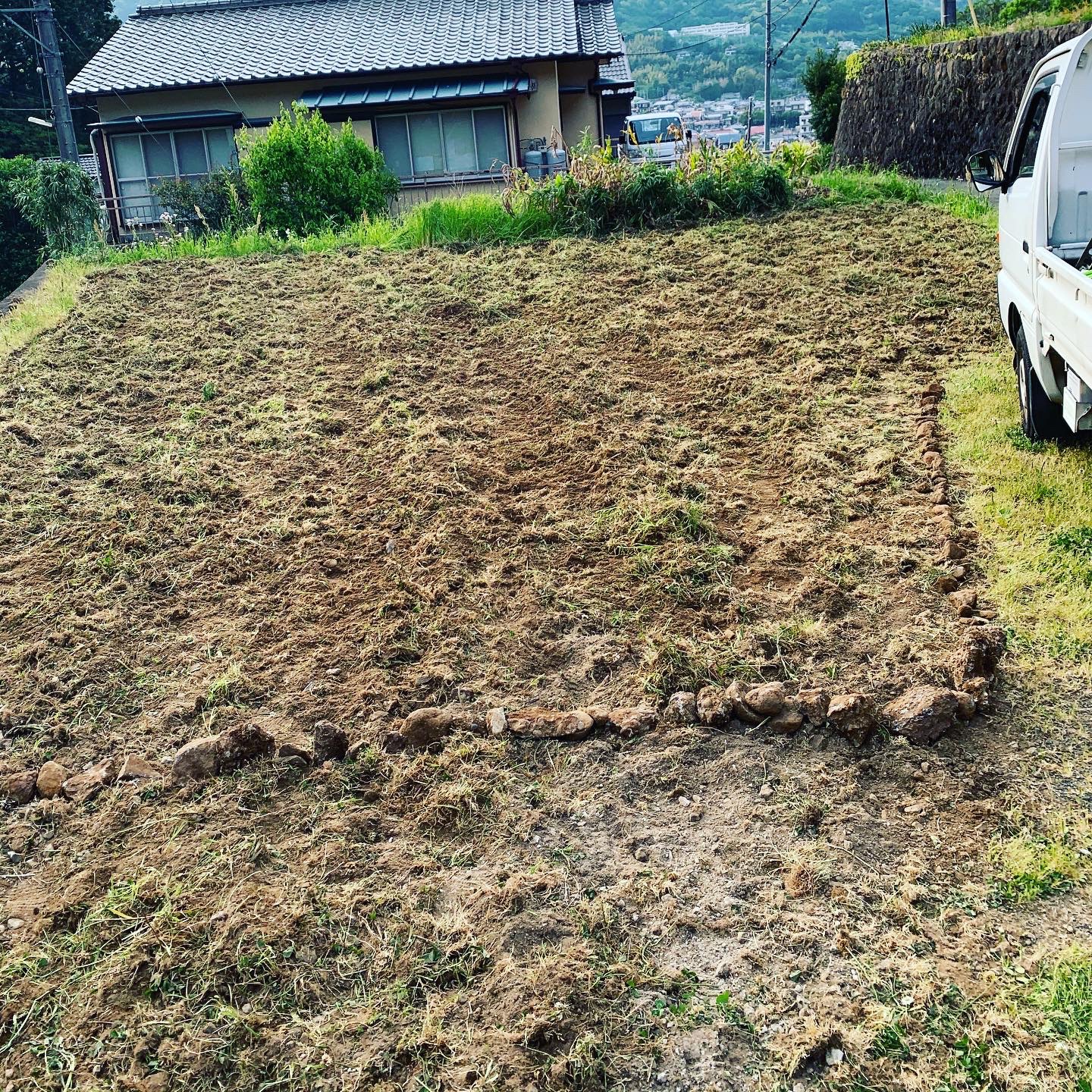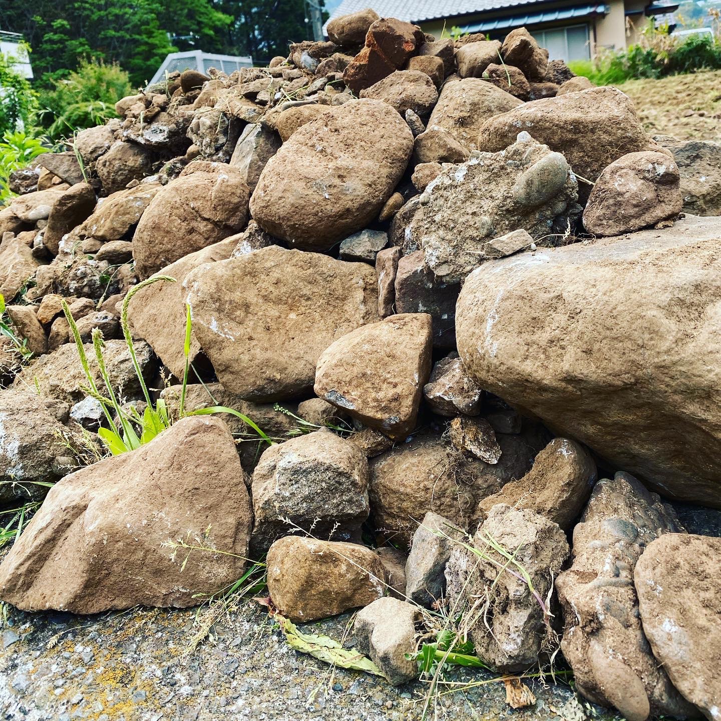 こちら、新たな開拓畑を整理して、土中から出てきた岩、石、計500kgほど。