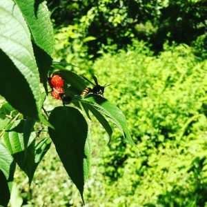 鳥はわかるが、蜂も糖分補給に木の実食べるのね!!