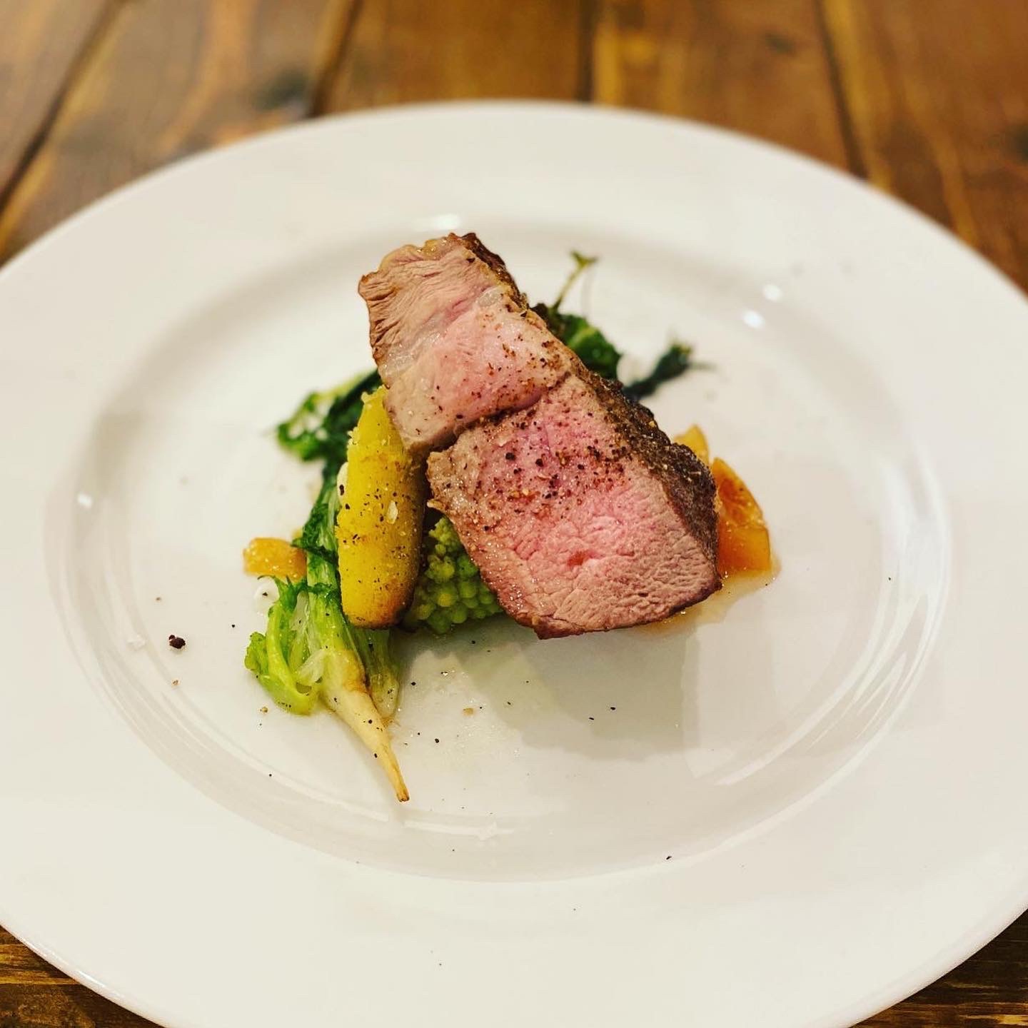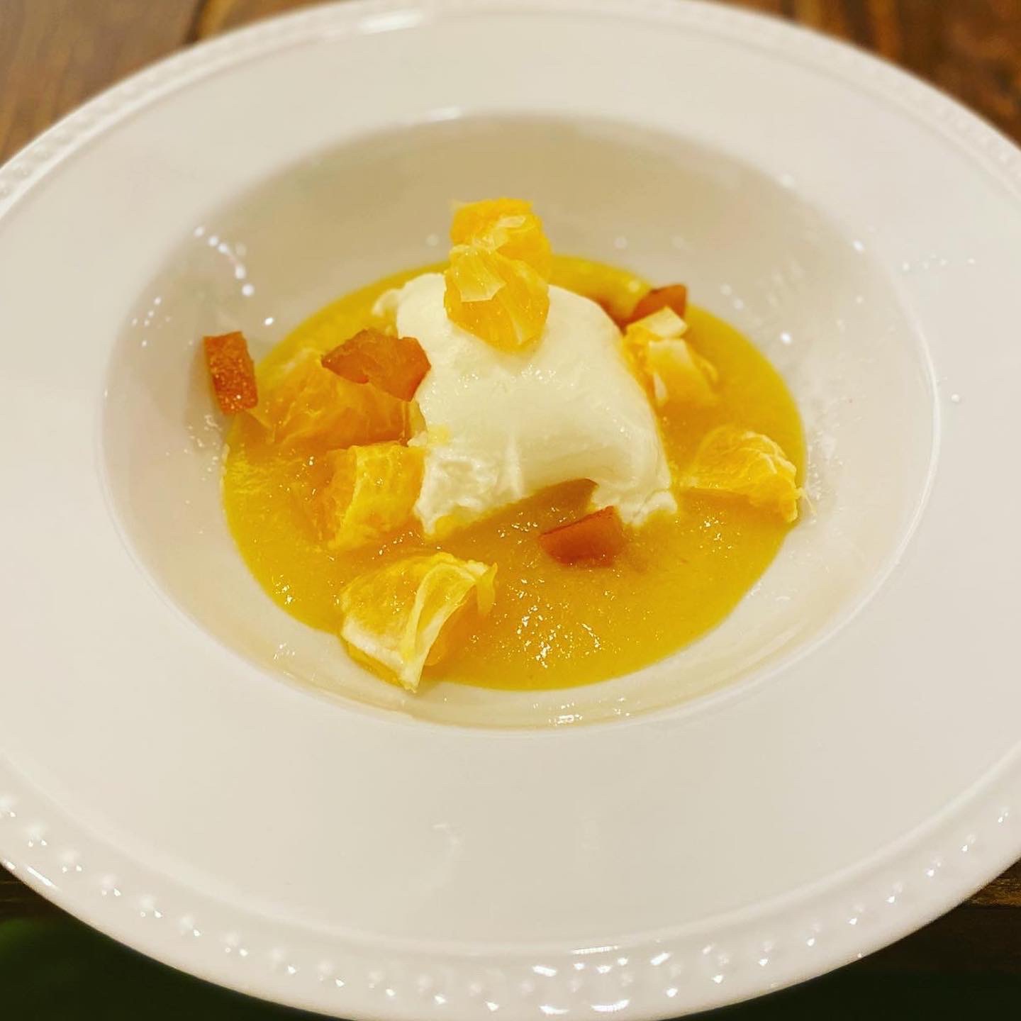 当園の #金柑 、#ビターオレンジ (ジュレ)、おたふく農園の #紫カラシ菜 から序章が始まり、 #菊芋 、 #パクチー、 #里芋 、#菜花 、#じゃがいも 、 #ブロッコリー 、 #ルッコラ 、 #ロマネスコ 、 #シルクスイート (サツマイモ》、 #カラシ菜 、 #伊予柑 、ビターオレンジピール、、、、 メンバーそれぞれの自慢の作物がどこかしこに散りばめられ、織り成す彩りと味わいのバランスは、食べる前に見惚れてしまう程だった。