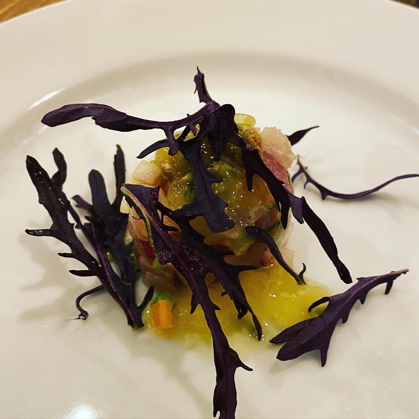 特に二品目の当園の菊芋を使った #菊芋ソース をさわらに添え、パクチーソースが散りばめられる料理は正に絶品だった(贔屓目無しにだ)。菊芋の無限の可能性が垣間見えた瞬間でもあった。