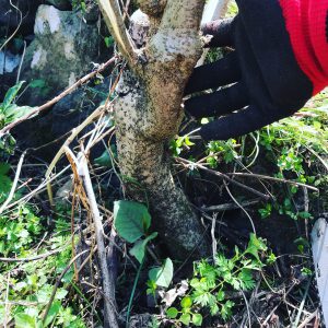 本来ならば、ユンボなどの機材を入れて抜根すべきなのだが、ここは機材が入れない畑。