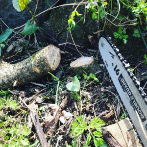 雑草は当然、雑木を草刈機とチェーンソー、鉈、選定ばさみを駆使し刈り上げる。
