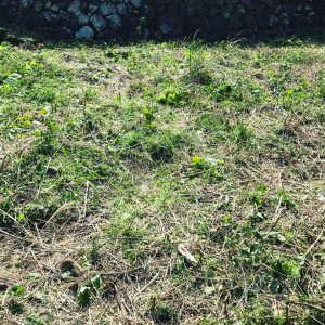 この後は刈り払い機の金属刃(チップソー)を、石垣の際までキレイに刈れるナイロンコードで仕上げるととてもキレイになる。