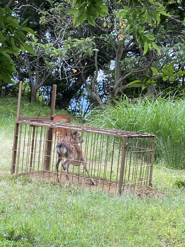 あらら、 #鹿 ちゃんが檻にかかってらよ